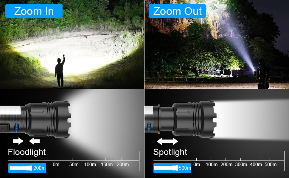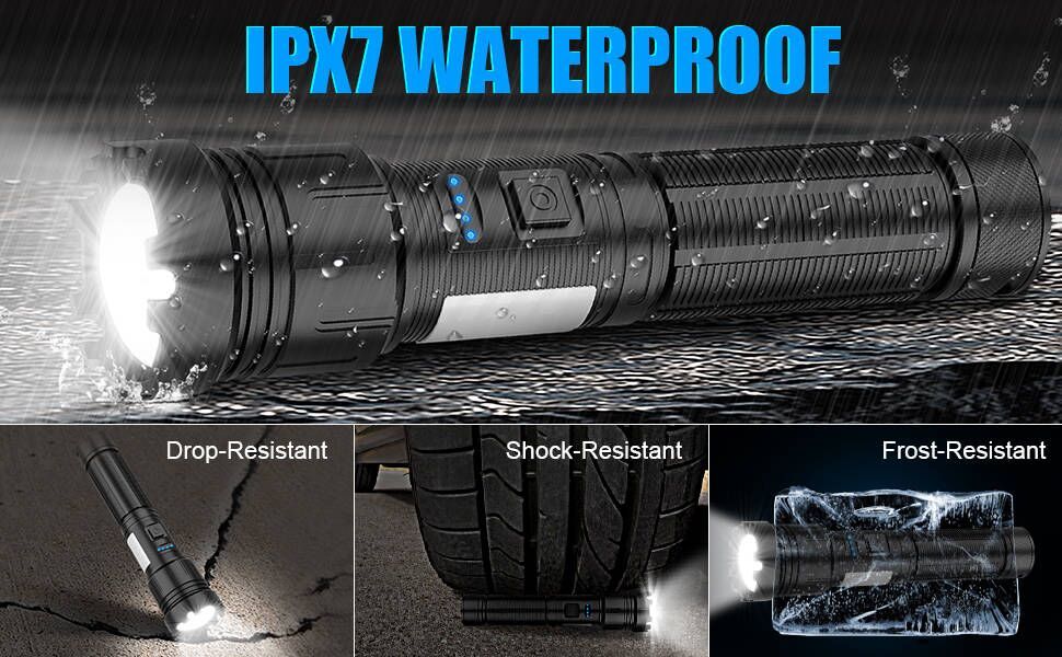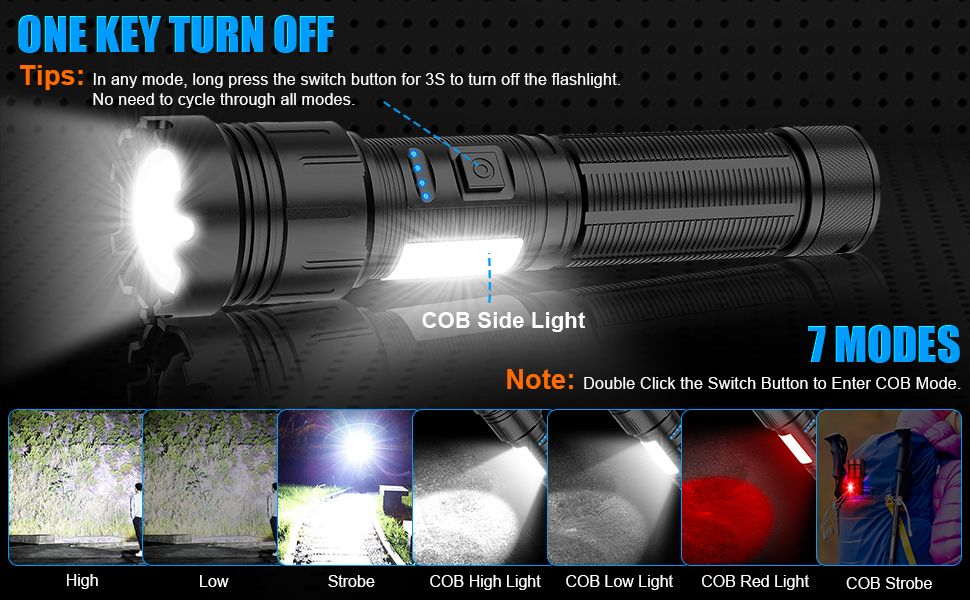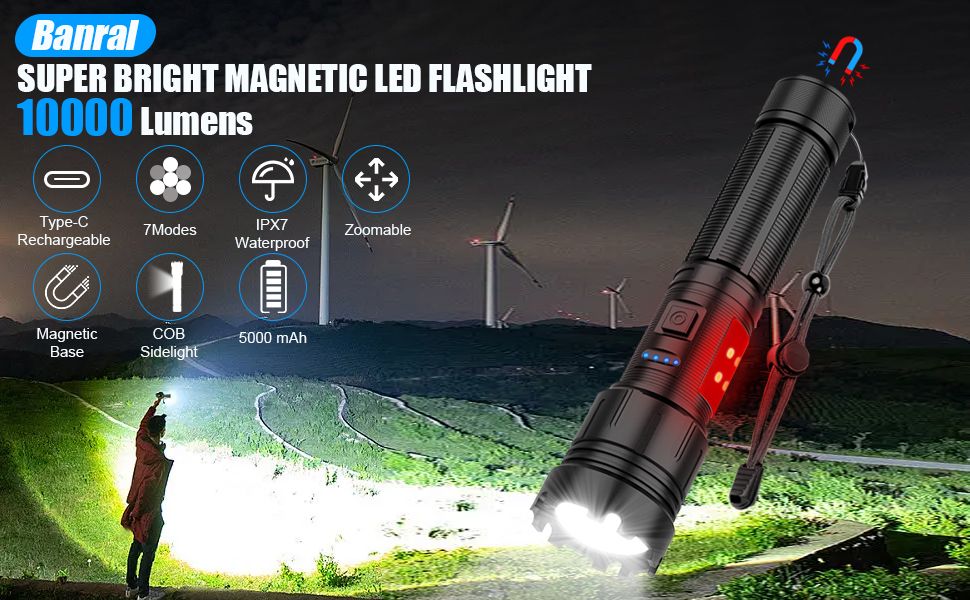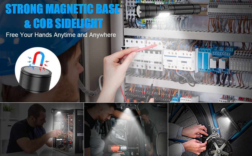 Type-C Fast Charging Flashlights with Power Bank Function, Strong Magnetic Base Flashlight with COB Work Light, Super Bright Emergency Flashlight, 7 Lighting Modes, One Key Turn Off, IPX7 Waterproof, Zoomable Adjustable Focus